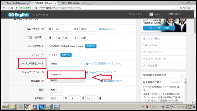 Skype側の不具合により、一部の教師陣がSkypeにログインおよび通話ができない事態が生じた場合、Skypeでのオンラインレッスンに変わりまして「Classroom」というビデオツールを使用してオンラインレッスンをご提供いたします。