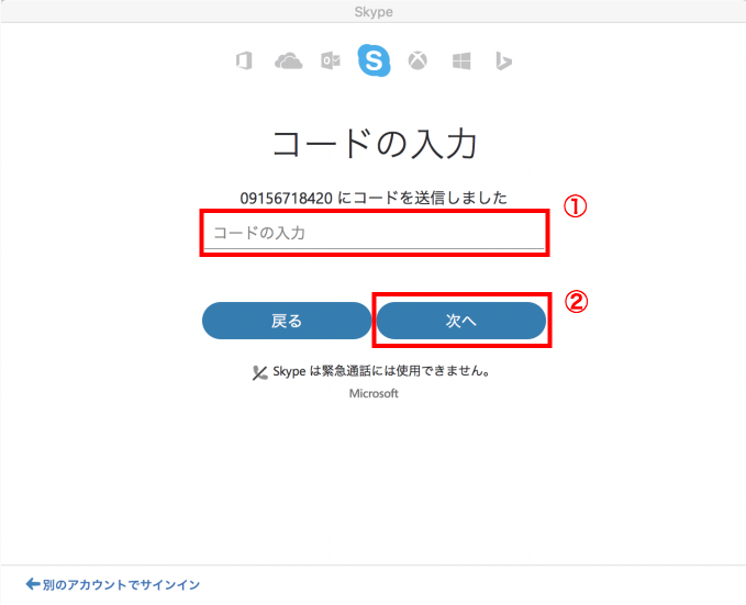 ①入力済みの携帯番号へ送られてきた4桁のコードを入力します。