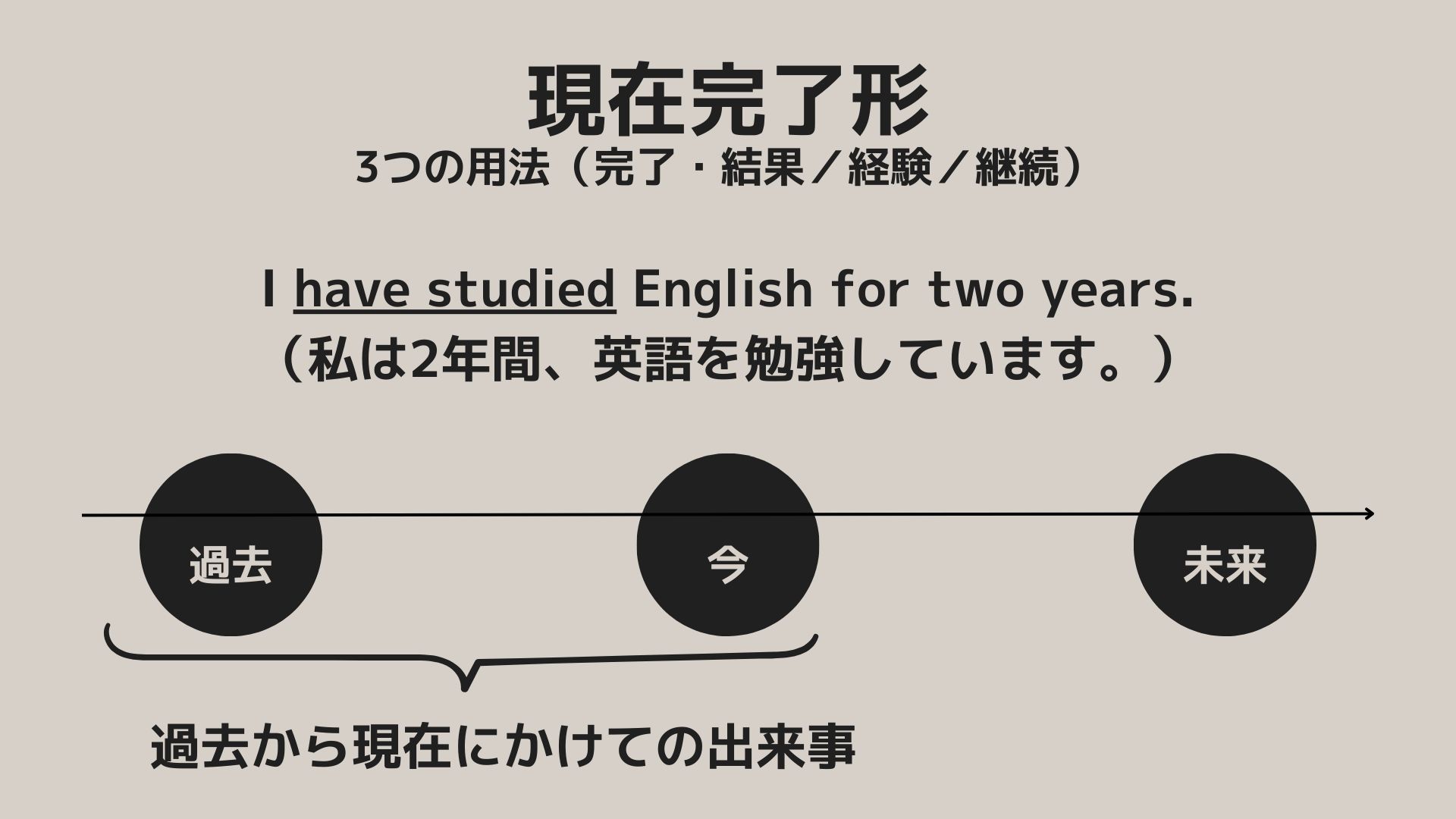 過去から現在にかけてある一定の時間の幅を持ち、「動作/行為の完了・結果」と「経験」、そして「状態の継続」の3つの用法があります。