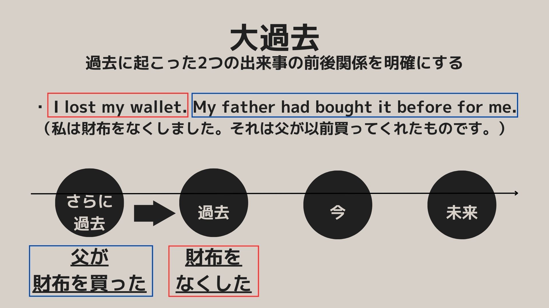 しかしながら「大過去」とは、過去に起こった2つの出来事の前後関係を明確にするための表現方法です。