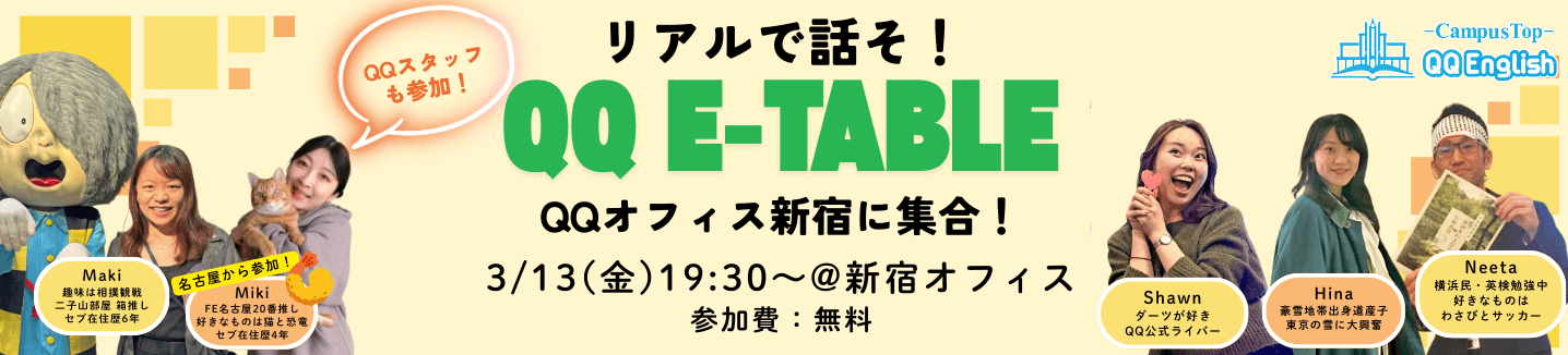 3月13日(金)「QQ E-Table@新宿オフィス」開催!