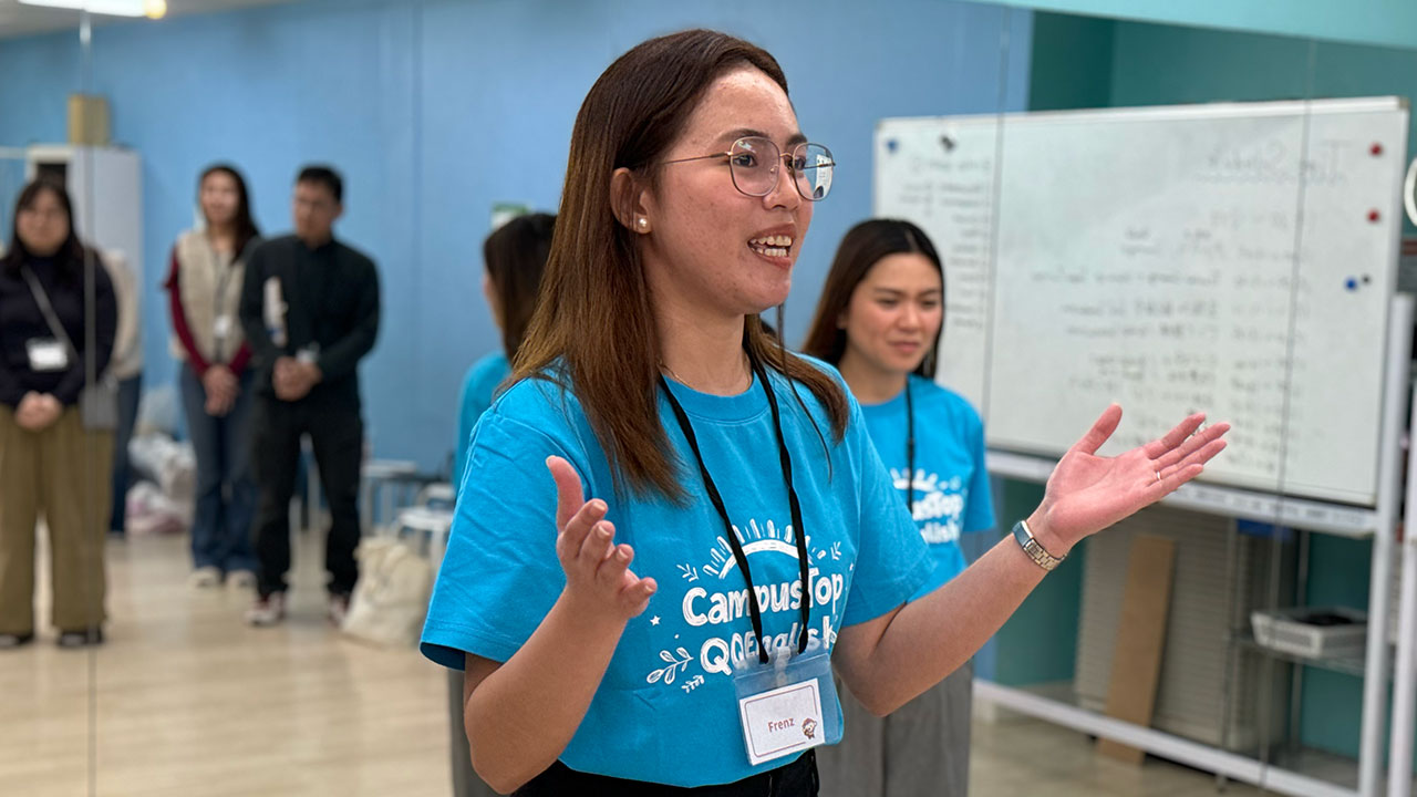イベントは、明るくエネルギッシュなフィリピン人教師3名の英語での自己紹介からスタート。