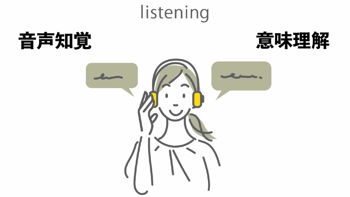 リスニングは大きく分けて、「音声知覚」と「意味理解」の2つのステップからなります。