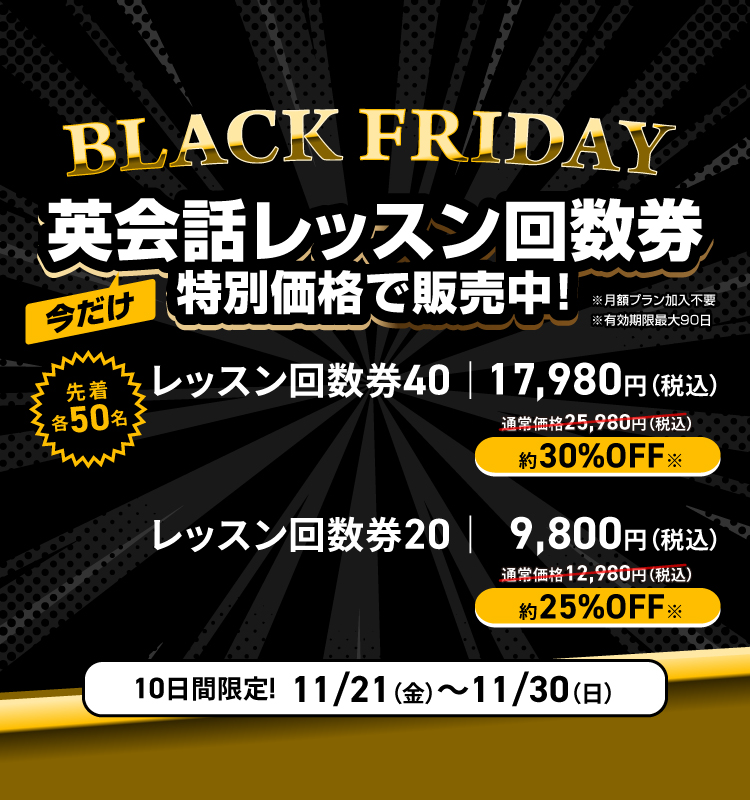内容:50Pts教師の25分英会話レッスンが40回受講できる回数券
