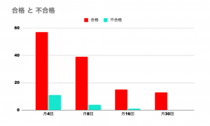 下の図は、実際の受講回数です。月4回よりも月8回にすれば合格率も上がっています。